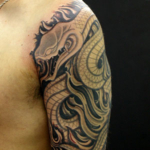 桜とイチョウと鈴と幾何学模様のタトゥー