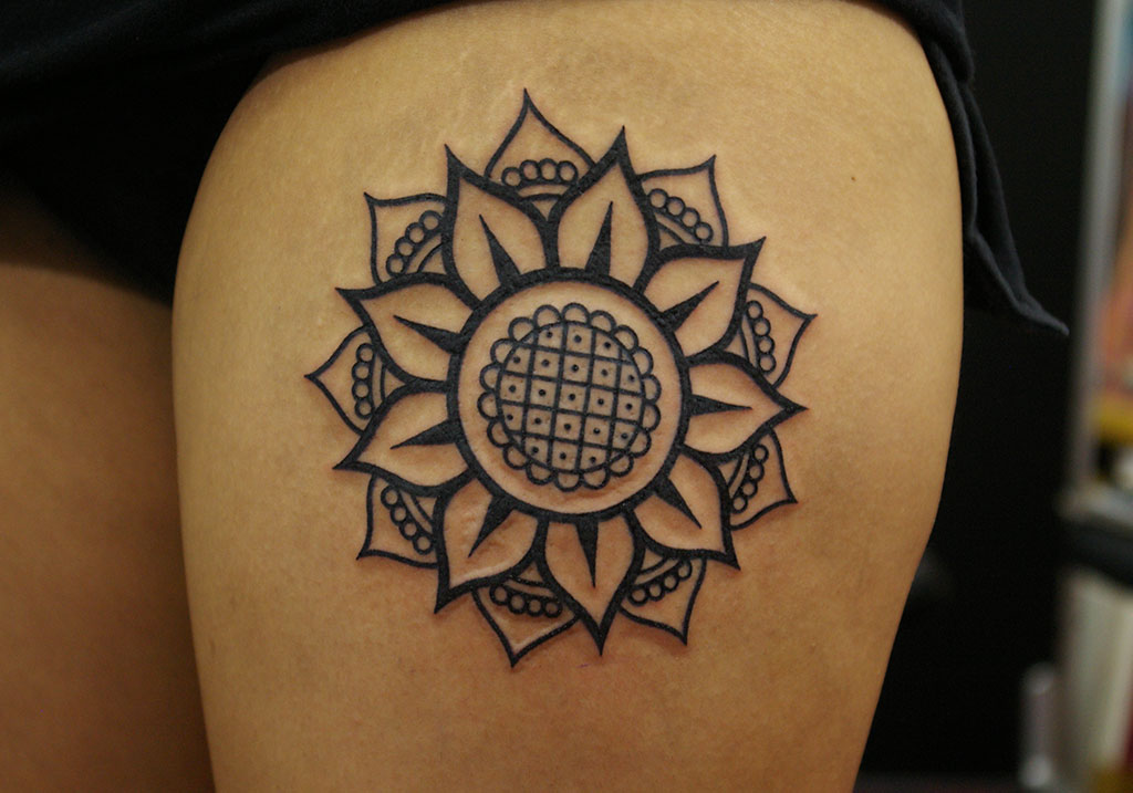 向日葵の様な花のタトゥー