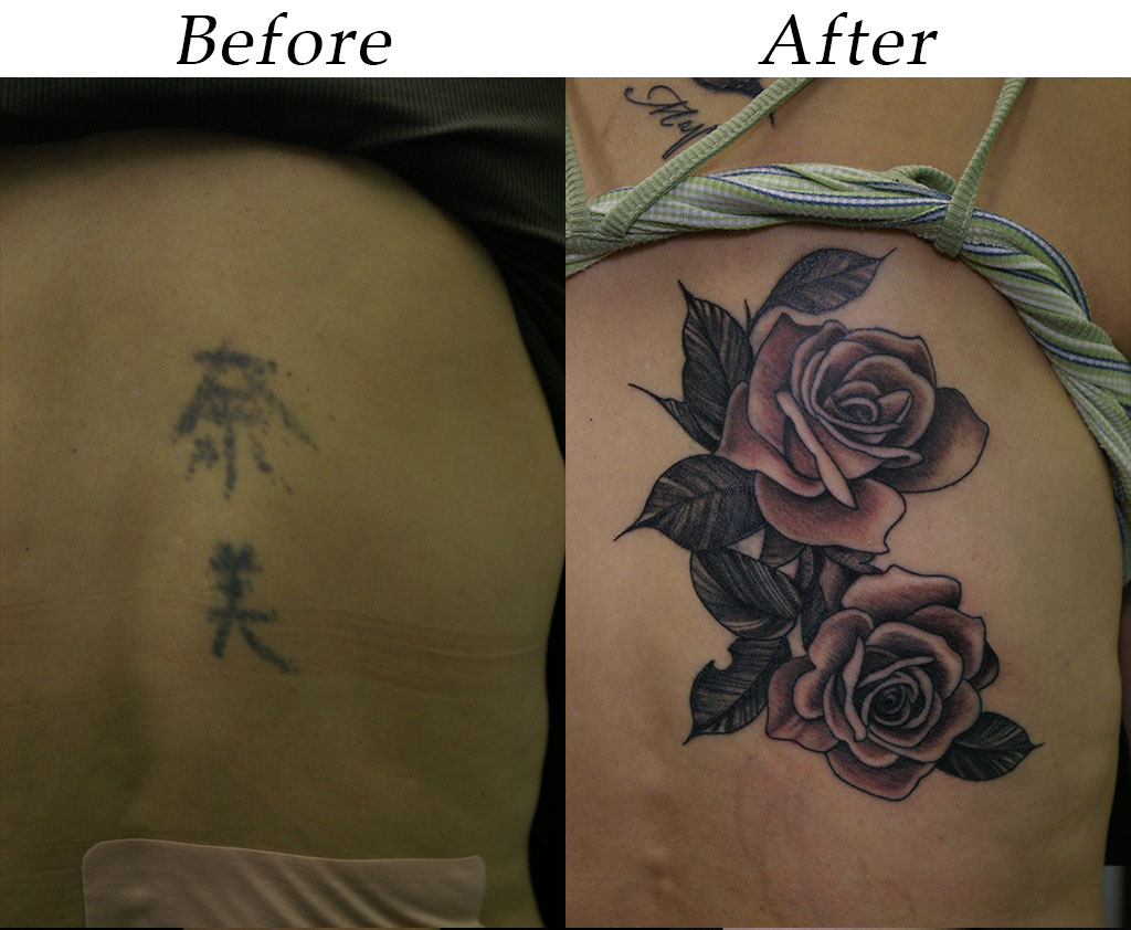 背中への薔薇のカバーアップ