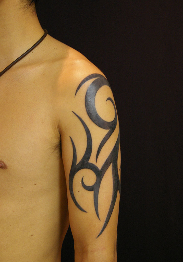 丸いデザインのトライバル前側のタトゥー